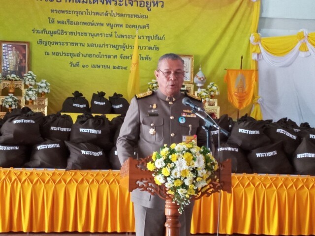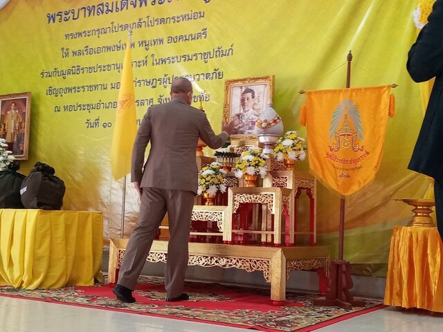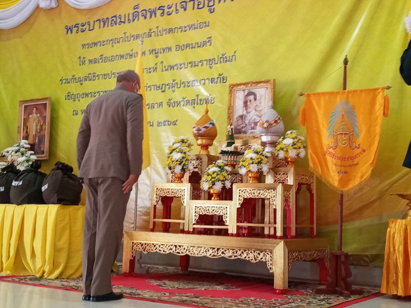 มูลนิธิราชประชานุเคราะห์ ในพระบรมราชูปถัมภ์ เชิญสิ่งของพระราชทานมอบแก่ประชาชนผู้ประสบวาตภัย ณ หอประชุมที่ว่าการอำเภอกงไกรลาส จังหวัดสุโขทัย